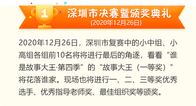 讓閱讀成為動(dòng)人的風(fēng)景,讓故事的魅力感動(dòng)深圳。為助力建設(shè)良好的青少年閱讀環(huán)境,激發(fā)學(xué)生閱讀興趣,倡導(dǎo)親子閱讀,共建和諧家庭關(guān)系。2020年,第二十一屆深圳讀書月主題活動(dòng)“誰(shuí)是故事大王·第四季”在共青團(tuán)深圳市委員會(huì)、深圳市關(guān)愛行動(dòng)組委會(huì)辦公室的指導(dǎo)下再出發(fā)。更長(zhǎng)的活動(dòng)周期,更豐富的參與形式,更專業(yè)的賽制,“誰(shuí)是故事大王·第四季”等你來(lái)解鎖與挑戰(zhàn)!