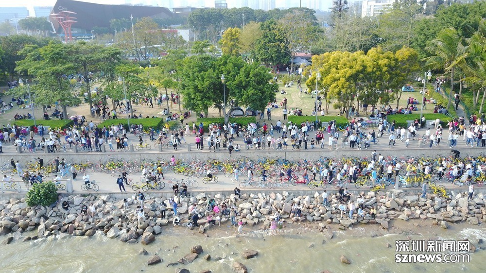 鵬城眼|深圳人假日勤動(dòng)腳 共享單車“擠爆”深圳灣