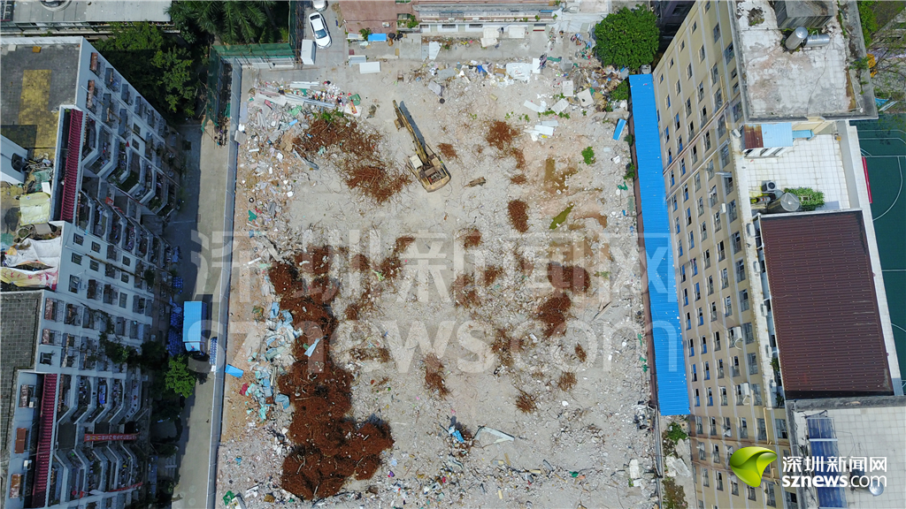 白石洲城中村內(nèi)的建筑工地,“握手樓”群被推倒,白石洲正在升級(jí)