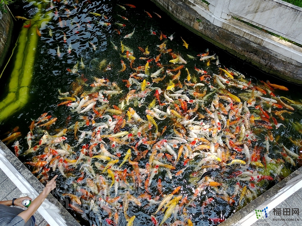 園內(nèi)的池子養(yǎng)了許多的錦鯉。
