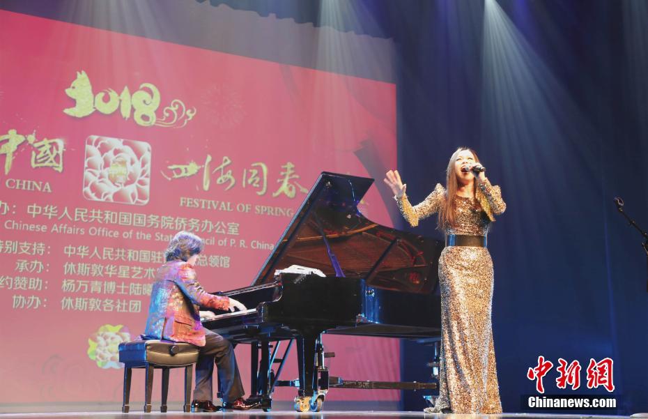 當(dāng)?shù)貢r(shí)間2月25日晚,2018年“文化中國·四海同春”藝術(shù)團(tuán)在美國南部城市休斯敦舉行慰?jī)S綜藝晚會(huì)。圖為中國知名歌手蔡國慶獻(xiàn)唱《同一首歌》。休斯敦是2018年“文化中國·四海同春”藝術(shù)團(tuán)赴美演出的首站,獲得休斯敦華人華僑的熱情回應(yīng)。其后,該藝術(shù)團(tuán)還將奔赴美國奧蘭多、舊金山、芝加哥演出。中新社記者曾靜寧 攝