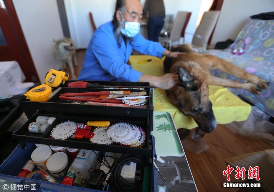 2018年春節(jié)期間,前往北京市朝陽(yáng)區(qū)高碑店鄉(xiāng)大黃莊社區(qū)甲3號(hào)的人絡(luò)繹不絕,他們來(lái)這里的目的,就是為了讓自己的愛犬“重生”。這家店的主人名叫老郭,是一位動(dòng)物標(biāo)本制作師,他對(duì)來(lái)客常說(shuō)的一句話就是:“你帶著躺下了的寵物來(lái),我還你一個(gè)站起來(lái)的它”。圖為郭元虎正在制作狗標(biāo)本。文字來(lái)源:法制晚報(bào) 圖片來(lái)源:視覺中國(guó)