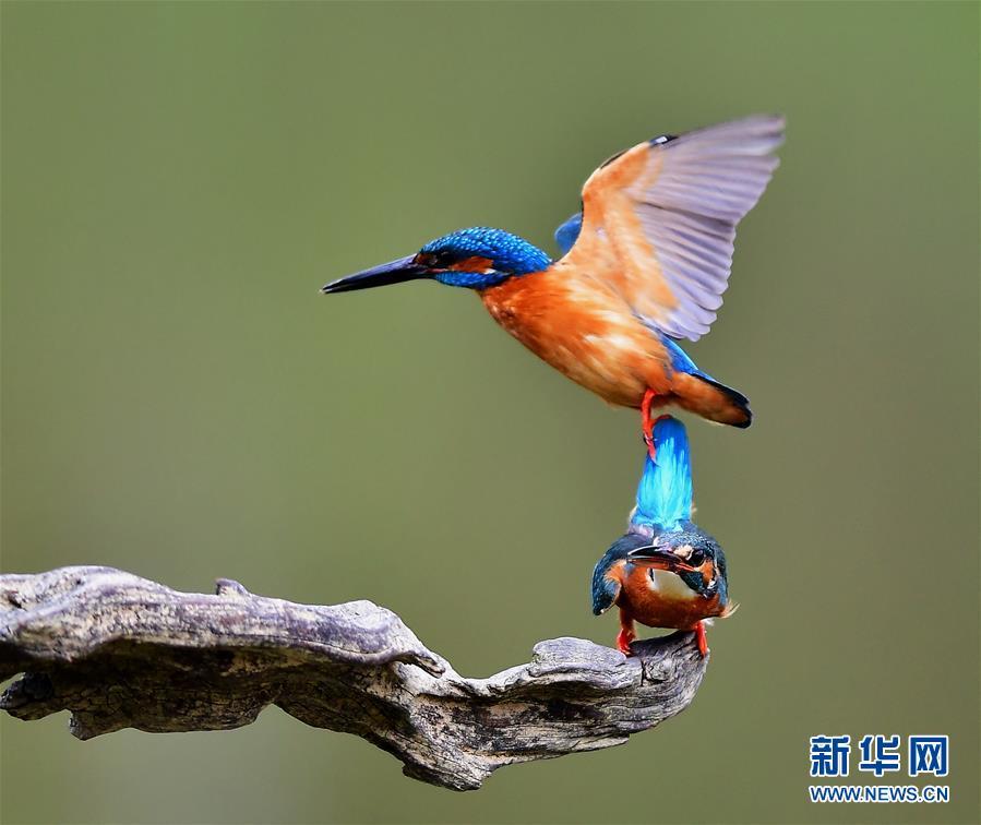 4月7日,在福建省福州市旗山國家森林公園,兩只翠鳥在嬉戲。新華社記者 梅永存 攝