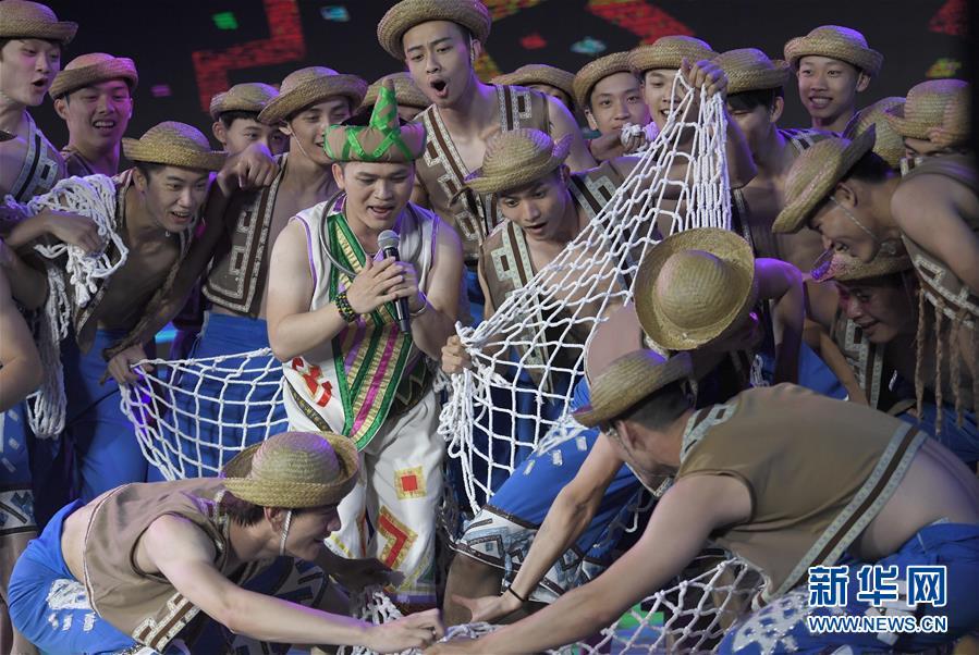 4月18日,在海南省五指山市,演員們表演節(jié)目慶祝“三月三”。當(dāng)日是農(nóng)歷三月初三,海南省黎族苗族同胞齊聚五指山市,歡慶“三月三”。新華社記者 趙穎全 攝