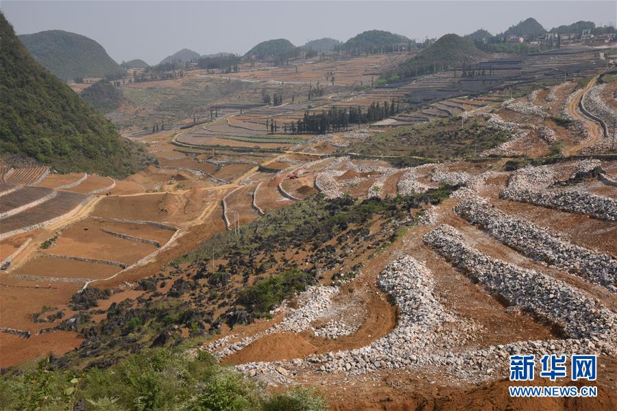 西疇縣興街鎮(zhèn)“三光”片區(qū)石漠化綜合治理工作接近尾聲,一片片石山被壘成臺地(2016年4月14日攝)。荒山禿嶺,怪石盤亙;河道斷流,重山阻隔。這是云南西疇,一個被專家稱為“失去生存條件”的地方。就在這樣一個地方,當(dāng)?shù)馗刹咳罕娨浴暗炔皇寝k法,干才有希望”的奮斗精神,戰(zhàn)天斗地、自力更生。目前,西疇縣公路密度是全省3倍,行政村、自然村通公路率均達100%。今年,西疇縣計劃脫貧摘帽。新華社記者吉哲鵬攝