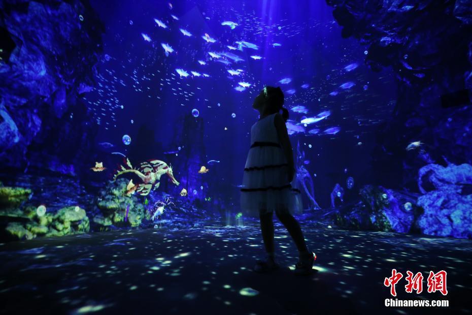 7月5日,民眾欣賞“尋夢海底兩萬里深海之光”沉浸式藝術展。當日,該展在北京嘉德藝術中心開幕。展覽是以“深海之光”為主題的海底光影沉浸式藝術展,創(chuàng)意藝術團隊利用數(shù)字技術和水打造出一個能夠感受到“生命”的深海世界。中新社記者楊可佳 攝