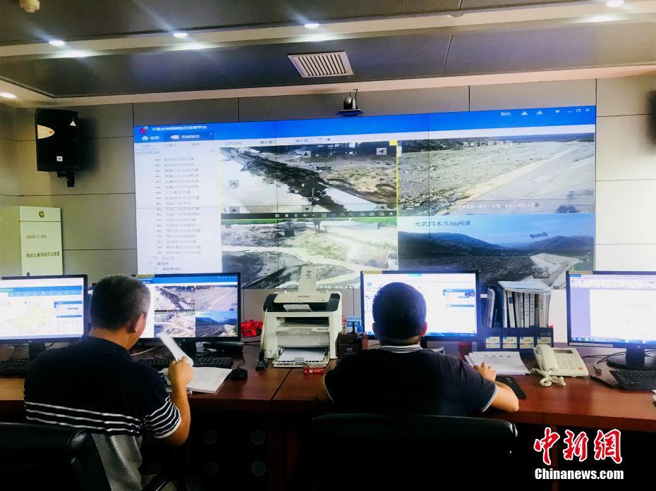 7月19日,寧夏水利廳防汛抗旱指揮調(diào)度系統(tǒng),工作人員監(jiān)控汛情變化。據(jù)了解,近日,甘肅、陜西等黃河流域普降大到暴雨,12日12時(shí),黃河1號洪峰進(jìn)入寧夏,入境流量達(dá)到每秒2100立方米,繼2012年以來,黃河寧夏段首次發(fā)布IV級預(yù)警。中新社記者額麗其格 攝