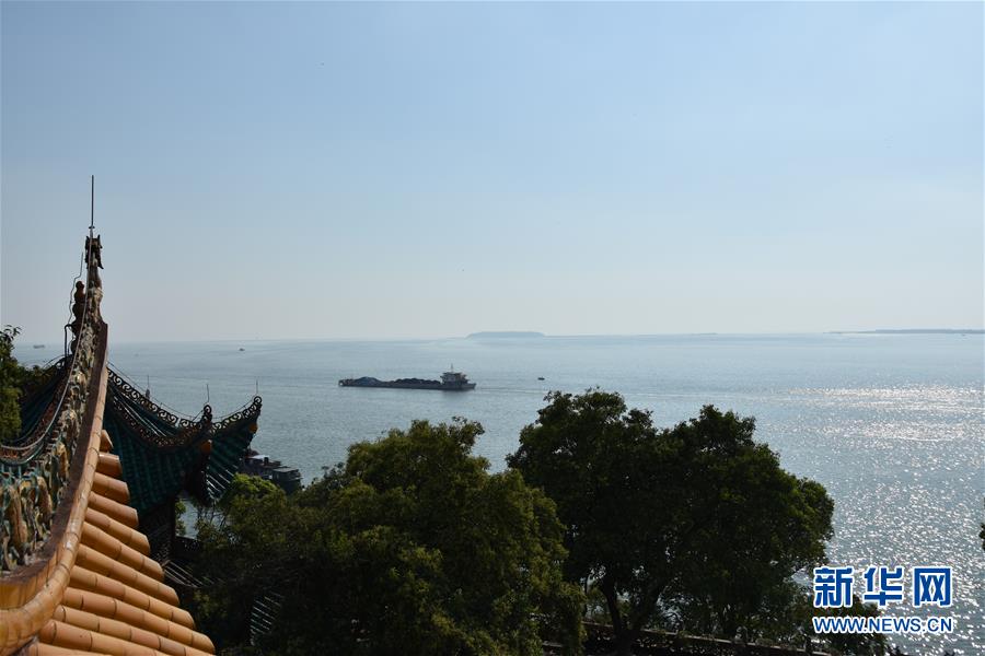 岳陽樓附近洞庭湖水域的“河道采砂聯(lián)合稽查點”(7月20日攝)。