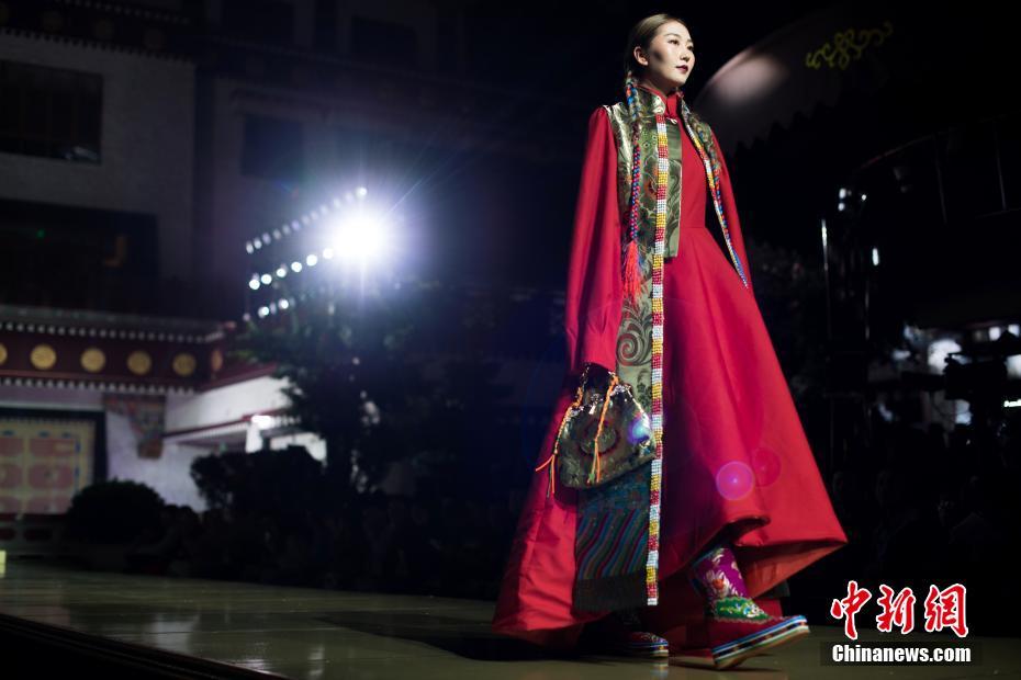 8月12日晚,由西藏職業(yè)技術(shù)學(xué)院與北京服裝學(xué)院共同打造的“凈美雪頓·美好生活”西藏民族服裝與服飾展演活動(dòng)在拉薩舉行。現(xiàn)場通過傳統(tǒng)篇、現(xiàn)代篇與未來篇三個(gè)篇章,展演了藏族傳統(tǒng)服裝26套,設(shè)計(jì)創(chuàng)新服裝58套,共計(jì)84套服裝。圖為模特展示現(xiàn)代設(shè)計(jì)的創(chuàng)新藏族服飾。中新社記者何蓬磊 攝