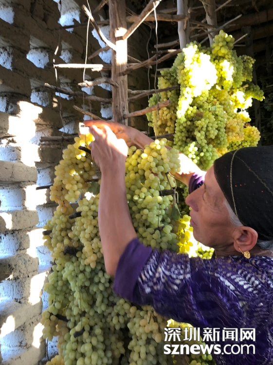 維族老鄉(xiāng)晾曬葡萄 趙春麗攝