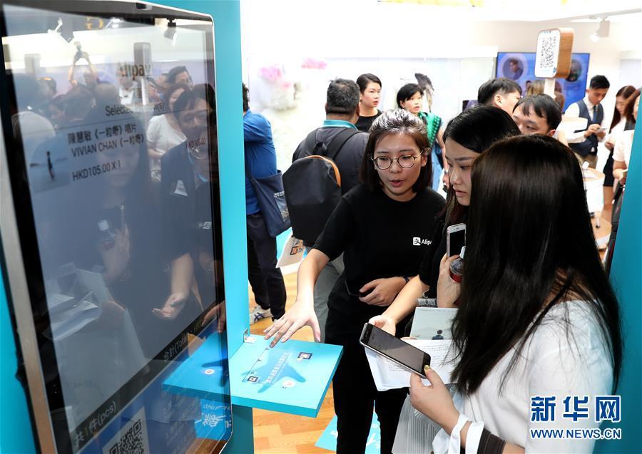 9月5日,工作人員在無人零售商店演示付款結(jié)賬方法。當(dāng)日,香港首家AlipayHK(支付寶香港版)無人零售商店在九龍區(qū)奧海城開業(yè)。商店占地約370平方米,售賣多款時(shí)尚精品、服飾等,還引入一臺智能機(jī)械臂,為顧客現(xiàn)場沖調(diào)香濃咖啡。新華社記者李鋼攝