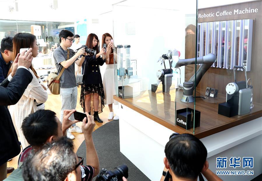 9月5日,無人零售商店內(nèi)的機(jī)器人在做咖啡。當(dāng)日,香港首家AlipayHK(支付寶香港版)無人零售商店在九龍區(qū)奧海城開業(yè)。商店占地約370平方米,售賣多款時(shí)尚精品、服飾等,還引入一臺智能機(jī)械臂,為顧客現(xiàn)場沖調(diào)香濃咖啡。新華社記者李鋼攝