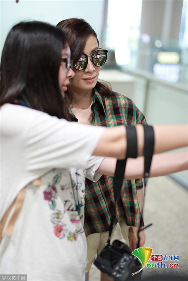 2018年9月9日,“嫻妃”佘詩曼從上海機場飛往北京機場,她擺“剪刀腿”大方任拍,身穿格紋襯搭配衫燈籠褲,時髦青春衣品超贊!