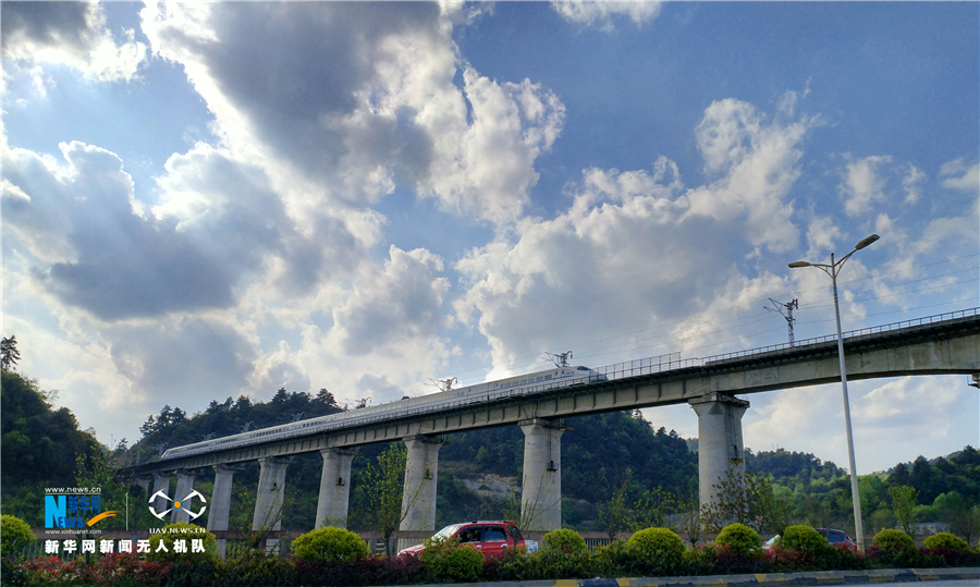 貴州省地處中國(guó)西南腹地,全省高原山地居多,因此高鐵建設(shè)的橋隧占比較高。在貴陽(yáng)市烏當(dāng)區(qū)新添寨,高鐵滬昆線、貴廣客運(yùn)專線、貴開城際客運(yùn)專線的隧道和橋梁交織在一起,形成“五洞五橋”并行,形似“五龍出海”的壯觀景象。圖為3月29日,一輛動(dòng)車在高鐵線路上運(yùn)行。新華網(wǎng)周遠(yuǎn)鋼 攝