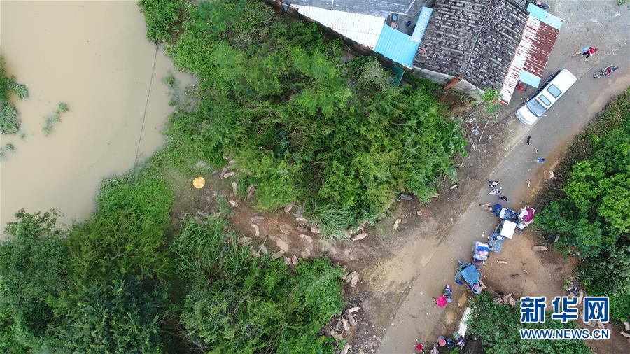 9月18日,在廣東省陽江市陽春市,村民將家畜轉(zhuǎn)移到高處(無人機拍攝)。 新華社記者張加揚攝