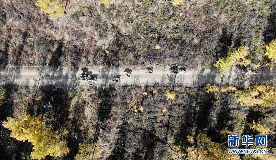 9月18日,在內(nèi)蒙古大興安嶺根河林業(yè)局約安里林場(chǎng),林場(chǎng)職工為馴鹿養(yǎng)殖基地運(yùn)送給養(yǎng)。新華社記者于洋攝