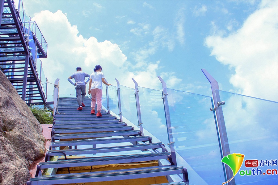 2018年8月,廣東清遠(yuǎn)。如今,玻璃橋、玻璃觀(guān)景臺(tái)、玻璃漂流道、玻璃滑道等玻璃產(chǎn)品可以說(shuō)多如牛毛,琳瑯滿(mǎn)目。這些玻璃產(chǎn)品都是水平的,即使有坡度,也是借助工具滑下去的。小伙伴們是否挑戰(zhàn)體驗(yàn)過(guò)像樓梯一樣的玻璃天梯,階梯式攀向高處,直聳云宵,云霧飄渺。
