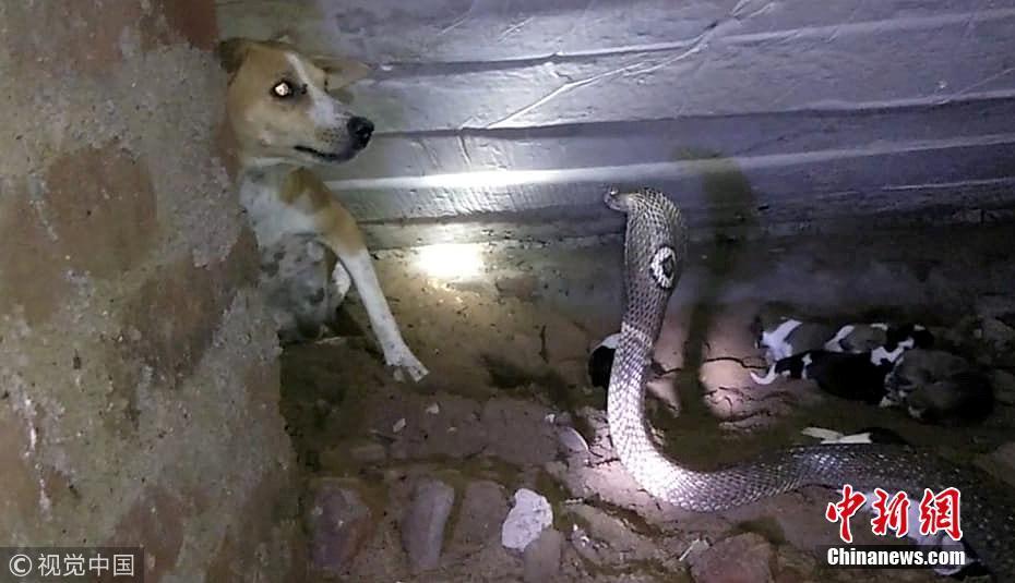 9月20日訊(具體拍攝時(shí)間不詳),印度奧里薩邦,一只寵物狗勇敢地挽救了新生幼犬的生命,它擊退了一條可怕的眼鏡蛇。面對一條巨大的斑點(diǎn)眼鏡蛇——世界上最毒的蛇之一——這位新媽媽勇敢保護(hù)僅出生兩天的幼崽。但不幸的是,盡管狗狗盡了最大的努力,蛇還是在救援人員救出幼犬之前仍殺死了4只小狗。圖片來源:視覺中國