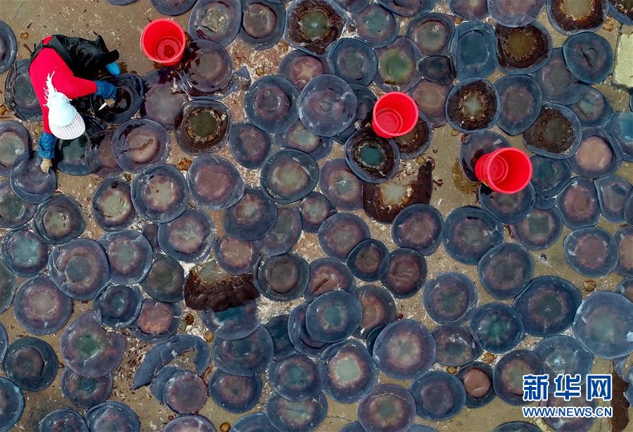 河北灤南:收獲海蜇