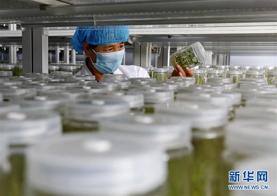 9月23日,張北縣小二臺鎮(zhèn)一家馬鈴薯育種中心的技術員在培育室查看薯苗長勢。 近年來,地處壩上地區(qū)的河北省張北縣因地制宜,積極推進馬鈴薯產(chǎn)業(yè)化發(fā)展,形成了馬鈴薯繁種育種、商品薯種植、倉儲、加工為一體的產(chǎn)業(yè)鏈,帶動農(nóng)民增收致富。 新華社記者楊世堯攝