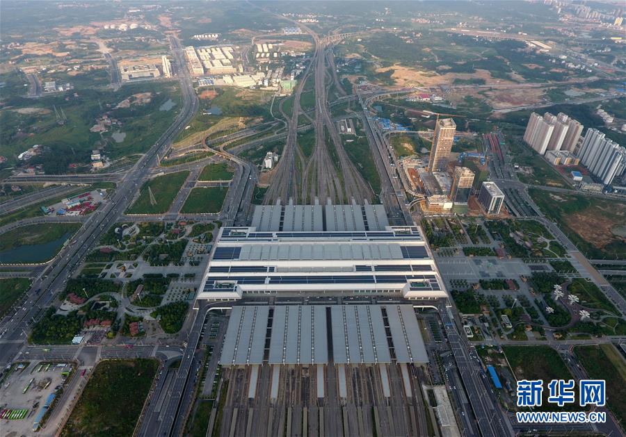 這是“零換乘”立體綜合交通樞紐——廣西南寧東站(9月4日無人機拍攝)。 廣西壯族自治區(qū)成立60年來,鐵路建設發(fā)生翻天覆地的變化。來自中國鐵路南寧局集團有限公司的數據顯示,1958年廣西鐵路總里程為1346.3公里,如今廣西鐵路總里程達5191公里。廣西與周邊相鄰省份間實現動車“公交化”開行。此外,北部灣港—重慶班列、東盟海產品冷鏈班列、“百色一號”果蔬專列等的開通和運營,強化了鐵路供給的針對性和有效性。鐵路成為助推廣西經濟社會快速發(fā)展的“大動脈”。 新華社記者陸波岸攝