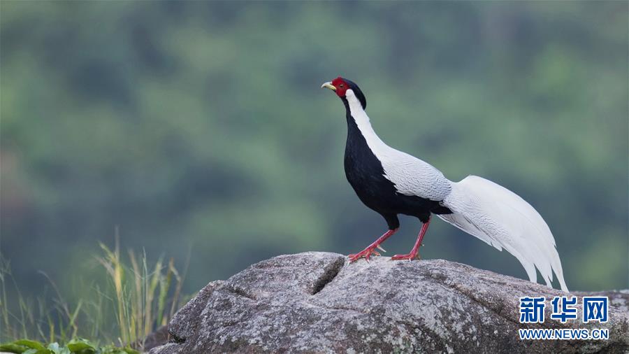 9月26日,在南靖縣鵝仙洞自然保護(hù)區(qū)內(nèi),一只白鷴在山石上停留。 新華社記者 梅永存 攝