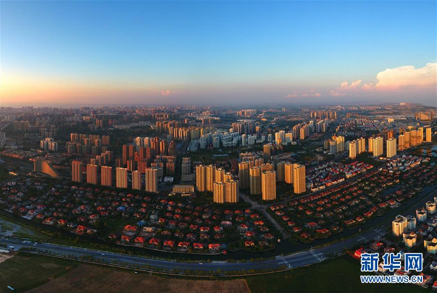 這是夕陽(yáng)下的廣西北海市區(qū)(9月25日無(wú)人機(jī)拍攝,拼接照片)。 新華社記者 黃孝邦 攝