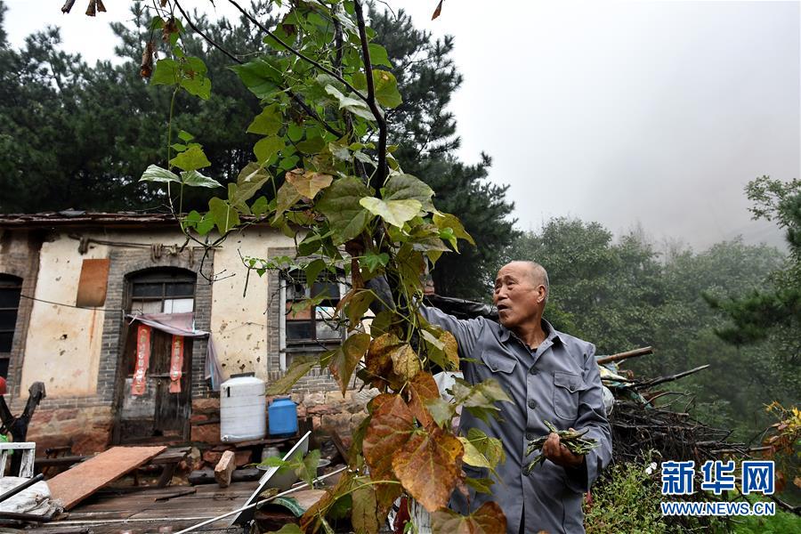 在黃崖洞烈士陵園,趙乃堂在采摘自己種的豆角準(zhǔn)備做午飯(9月19日攝)。新華社記者 詹彥 攝