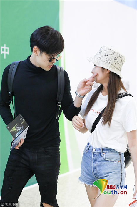 2018年9月26日,上海,穎兒、付辛博夫婦亮相機(jī)場(chǎng)。穎兒身穿白T恤和牛仔短褲露出纖細(xì)美腿十分養(yǎng)眼,一路挽著老公的手十分恩愛(ài)甜蜜,日前,穎兒還在節(jié)目上痛哭述說(shuō)自己與付辛博新婚相處的苦楚。