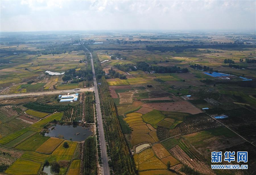 這是小崗村的稻田及公路(9月26日無(wú)人機(jī)拍攝)。