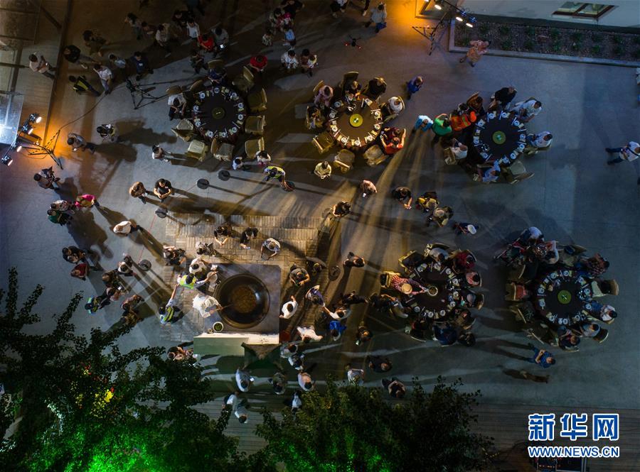 9月30日,中外游客入席品嘗“江鮮第一鍋”(無人機拍攝)。當日,浙江省杭州市富陽區(qū)場口鎮(zhèn)東梓關村開啟“江鮮第一鍋”,幾位大廚聯(lián)手在直徑1.5米的大鍋內烹制美味江鮮,這也是當?shù)亍敖r大會”的重頭戲。東梓關村有著1000多年歷史,古就是富春江南岸重要的商貿集散地,素有富春江“東流第一關”之稱。隨著近年來美麗鄉(xiāng)村建設的推進,東梓關村著力打造粉墻黛瓦的江南民居,同時依托富春江豐富的江鮮魚類資源,在秋季舉辦特色“江鮮大會”,通過江鮮捕撈體驗、江鮮第一鍋、百鮮宴、農家菜大賽等活動,吸引各地游客前來感受富春江漁民豐收的喜悅和千年古村的獨特魅力,推動鄉(xiāng)村特色旅游發(fā)展。新華社記者徐昱攝