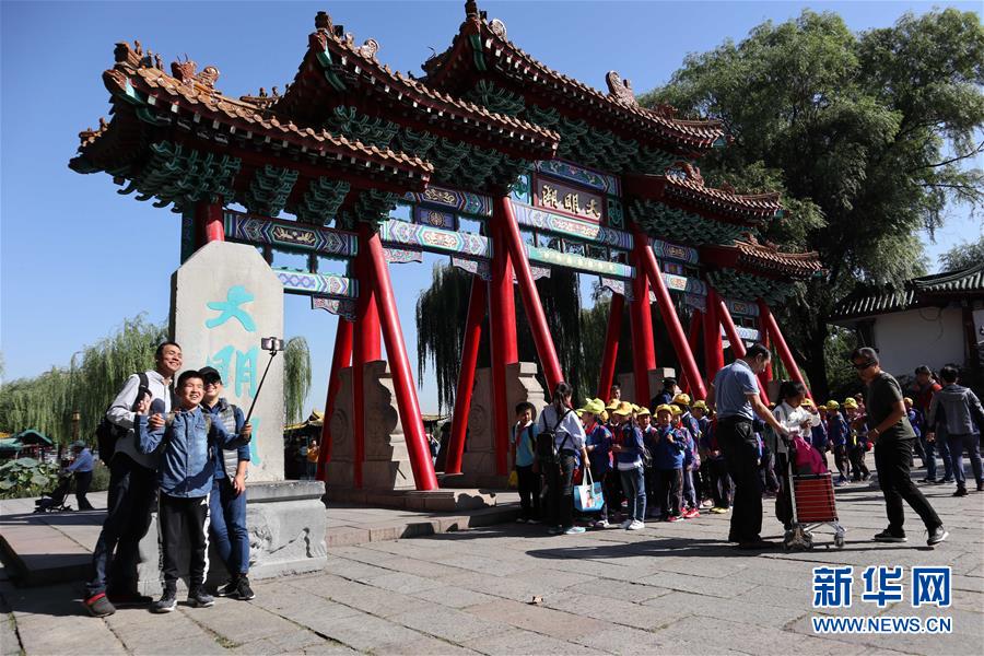9月30日,游客在免費開放的濟南市大明湖景區(qū)游覽。近年來,山東積極推進國有景區(qū)免費開放工作,截至目前,山東實現(xiàn)免費開放的國有景區(qū)已達286處。新華社記者徐速繪攝
