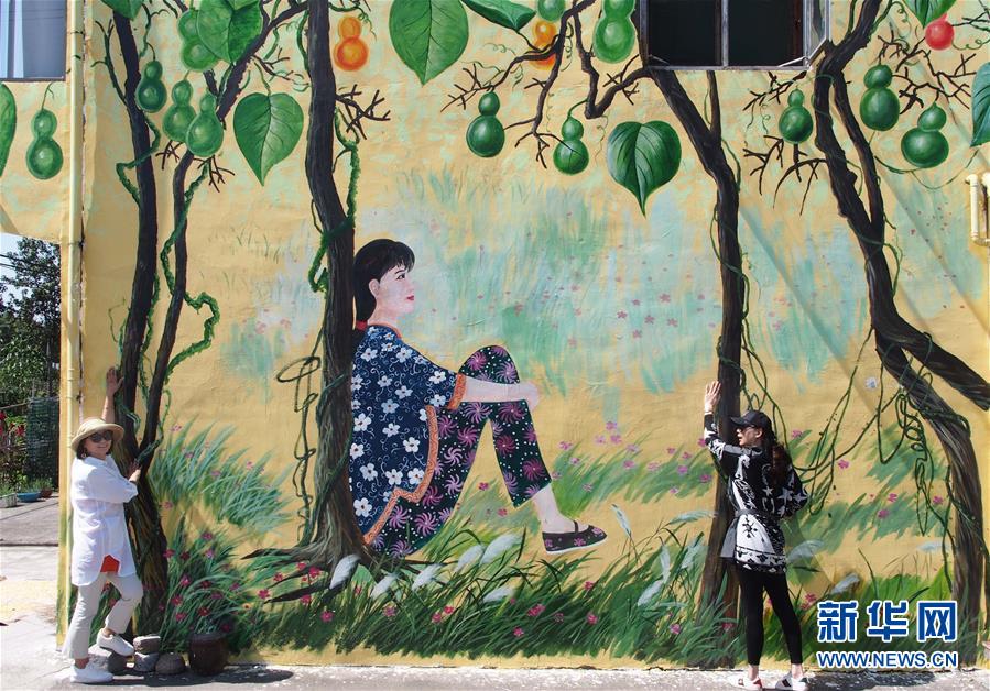 在上海市金山區(qū)呂巷鎮(zhèn)和平村,村民房屋的墻壁上繪制了色彩艷麗、風(fēng)格各異的壁畫(huà),展現(xiàn)田園生活景象,吸引不少游人來(lái)此參觀。