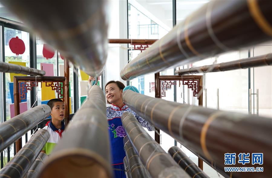 10月8日,崇義縣竹樂(lè)樂(lè)團(tuán)的演員在教學(xué)生演奏竹排琴。 近年來(lái),江西省崇義縣思源實(shí)驗(yàn)學(xué)校定期開設(shè)竹樂(lè)課,邀請(qǐng)崇義縣竹樂(lè)樂(lè)團(tuán)的演員教授學(xué)生演奏竹排琴、竹板琴等竹樂(lè)樂(lè)器,激發(fā)學(xué)生了解傳統(tǒng)文化的熱情。 新華社記者胡晨歡攝