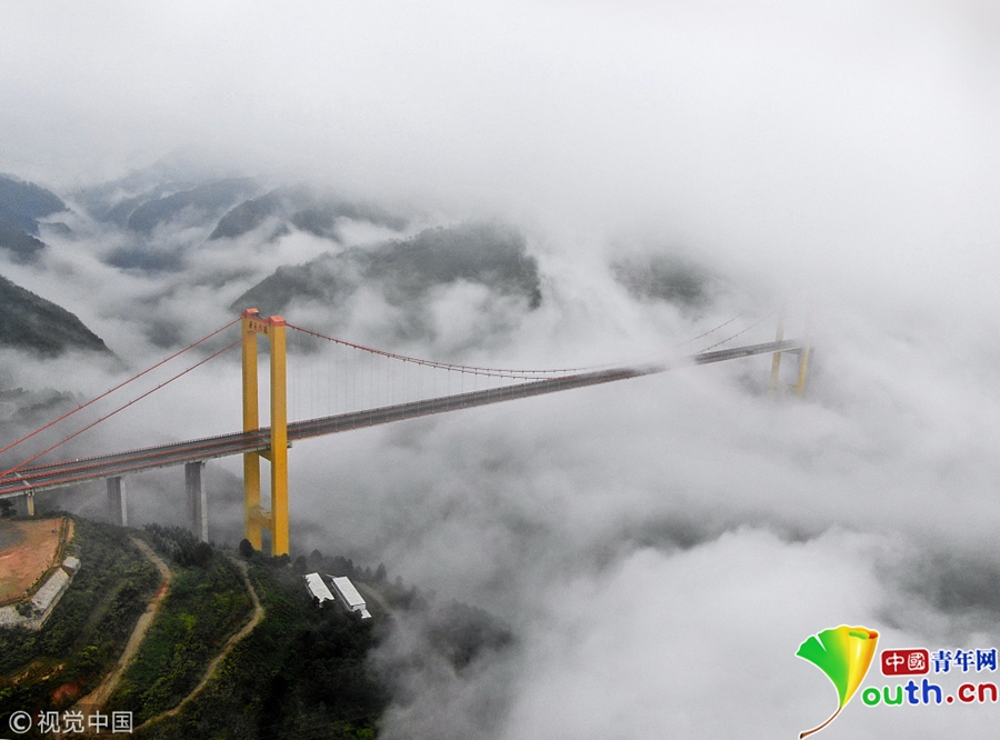 普立大橋云飄霧繞如仙境 一路風光美不勝收
