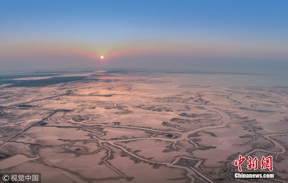 10月3日,山東東營,航拍黃河三角洲國家級自然保護區(qū)內(nèi)壯觀的河流脈絡(luò)。圖片來源:視覺中國