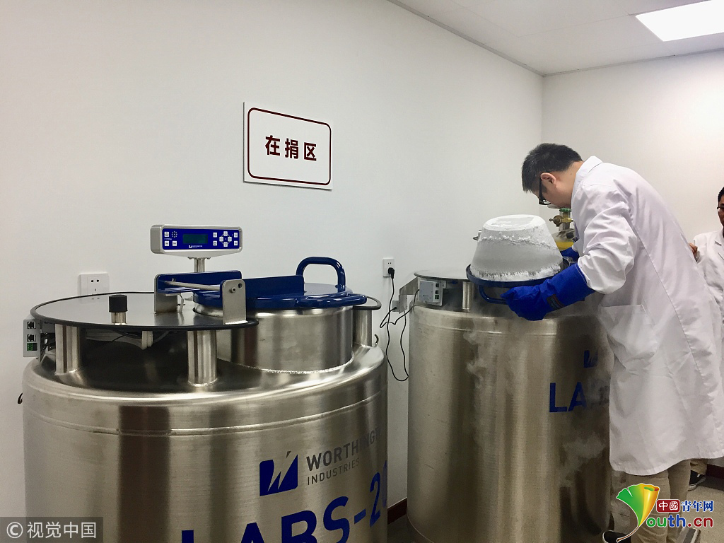 2018年9月20日,上海,實(shí)拍復(fù)旦大學(xué)人類(lèi)精子庫(kù)。在復(fù)旦大學(xué)人類(lèi)精子庫(kù),志愿者捐獻(xiàn)出的精液被保存在液氮中。圖片作者:陳斯斯