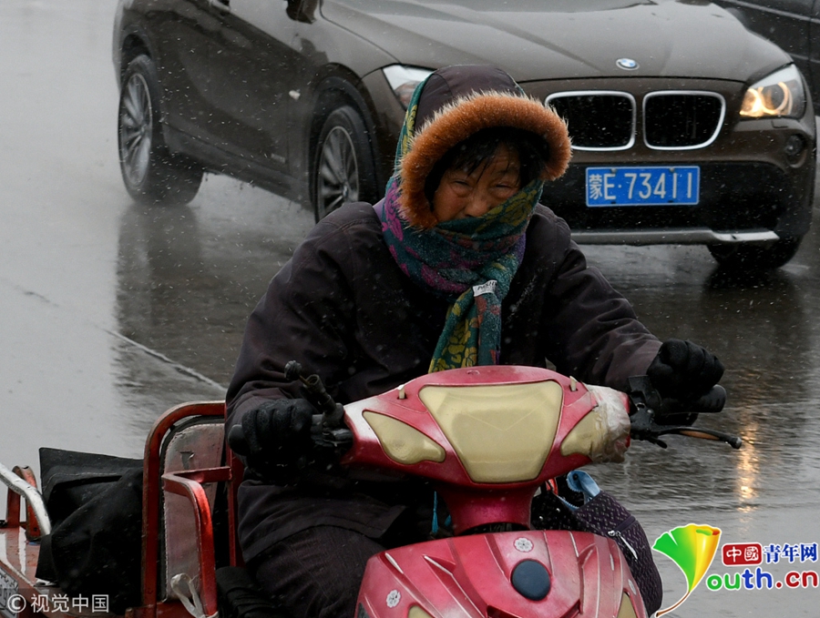 市民雨雪中出行。圖片作者 /視覺中國(guó)