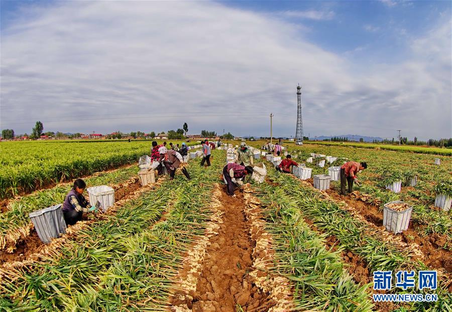 10月9日,秦皇島市撫寧區(qū)留守營鎮(zhèn)桑園村農(nóng)民在收獲生姜。 近年來,河北省秦皇島市撫寧區(qū)在農(nóng)業(yè)結(jié)構(gòu)調(diào)整過程中,引導(dǎo)當(dāng)?shù)剞r(nóng)民種植優(yōu)質(zhì)無公害生姜,并安排農(nóng)業(yè)技術(shù)員定期到田間指導(dǎo)農(nóng)民對生姜進(jìn)行標(biāo)準(zhǔn)化管理。據(jù)介紹,今年該縣生姜種植面積1萬多畝,預(yù)計(jì)產(chǎn)生姜5萬噸,種植戶每畝純收入達(dá)1萬多元。 新華社記者 楊世堯 攝