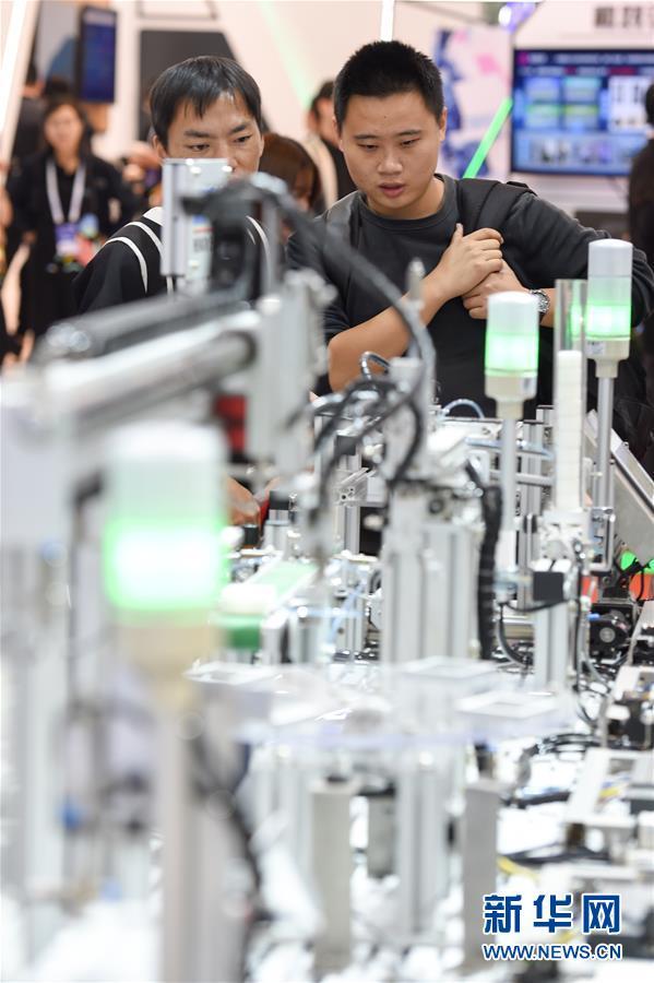 10月11日,觀眾在博覽會(huì)現(xiàn)場(chǎng)觀看模塊化自動(dòng)生產(chǎn)線。 當(dāng)日,2018世界智能制造大會(huì)·智領(lǐng)全球博覽會(huì)在南京國(guó)際博覽中心開(kāi)展。本次博覽會(huì)以“賦能升級(jí),智造未來(lái)”為主題,總展示面積約5萬(wàn)平方米,共有1900多家國(guó)內(nèi)外企業(yè)參會(huì)參展。博覽會(huì)將展示國(guó)內(nèi)外智能制造領(lǐng)域的最新技術(shù)和頂尖產(chǎn)品,發(fā)布國(guó)內(nèi)智能制造示范企業(yè)的最新發(fā)展成果,同時(shí)分享智能制造實(shí)際應(yīng)用方面最前沿的解決方案。 新華社記者李博攝
