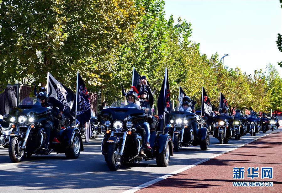 當日,2018唐山南湖重機車文化節(jié)在河北唐山南湖公園丹鳳朝陽廣場舉行,吸引來自全國各地近100家重機俱樂部的近千名騎手和500余臺摩托車參加文化節(jié)的巡游活動。