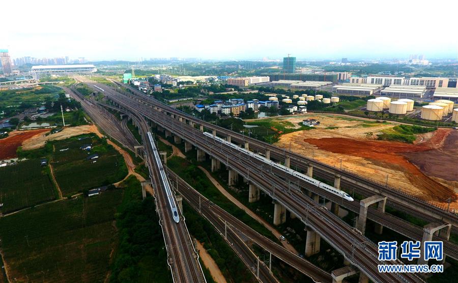 動(dòng)車行駛在廣西南寧市屯里特大橋上(7月1日無(wú)人機(jī)拍攝)。 廣西壯族自治區(qū)成立60年來(lái),鐵路建設(shè)發(fā)生翻天覆地的變化。來(lái)自中國(guó)鐵路南寧局集團(tuán)有限公司的數(shù)據(jù)顯示,1958年廣西鐵路總里程為1346.3公里,如今廣西鐵路總里程達(dá)5191公里。廣西與周邊相鄰省份間實(shí)現(xiàn)動(dòng)車“公交化”開行。此外,北部灣港—重慶班列、東盟海產(chǎn)品冷鏈班列、“百色一號(hào)”果蔬專列等的開通和運(yùn)營(yíng),強(qiáng)化了鐵路供給的針對(duì)性和有效性。鐵路成為助推廣西經(jīng)濟(jì)社會(huì)快速發(fā)展的“大動(dòng)脈”。 新華社記者黃孝邦攝