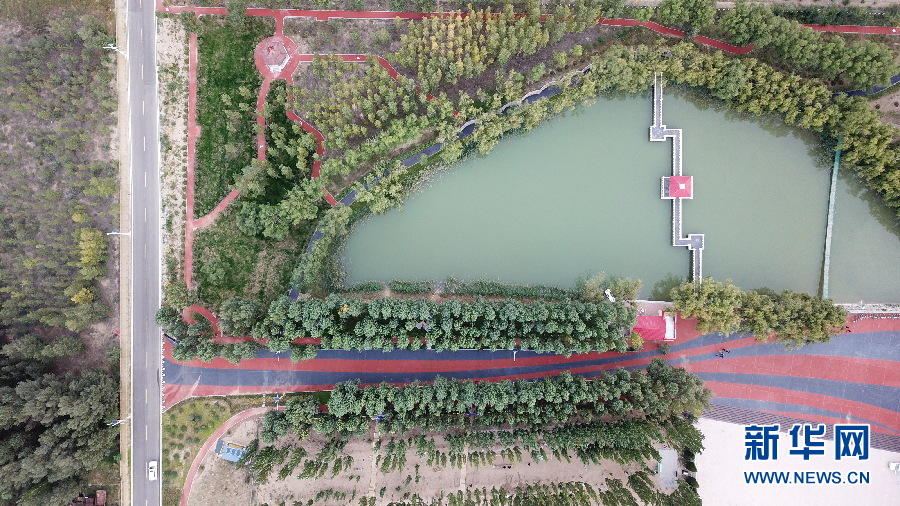 恩格貝生態(tài)示范區(qū)位于庫(kù)布齊沙漠中段,總面積200平方公里。這里曾經(jīng)風(fēng)沙肆虐,恩格貝生態(tài)示范區(qū)建設(shè)者經(jīng)過長(zhǎng)期艱苦奮斗,用雙手和鐵鍬“種”出一片人造沙漠綠洲,在沙漠里打造了一顆璀璨的生態(tài)明珠,如今這里是國(guó)家生態(tài)旅游示范區(qū)和國(guó)家4A級(jí)景區(qū)。月亮湖位于恩格貝生態(tài)示范區(qū)核心區(qū)域,周圍被綠色植被環(huán)繞,在無(wú)人機(jī)航拍視角下,猶如鑲嵌在沙漠綠洲里的一塊碧玉,呈現(xiàn)出大自然的和諧之美。(新華網(wǎng) 王宇 攝)