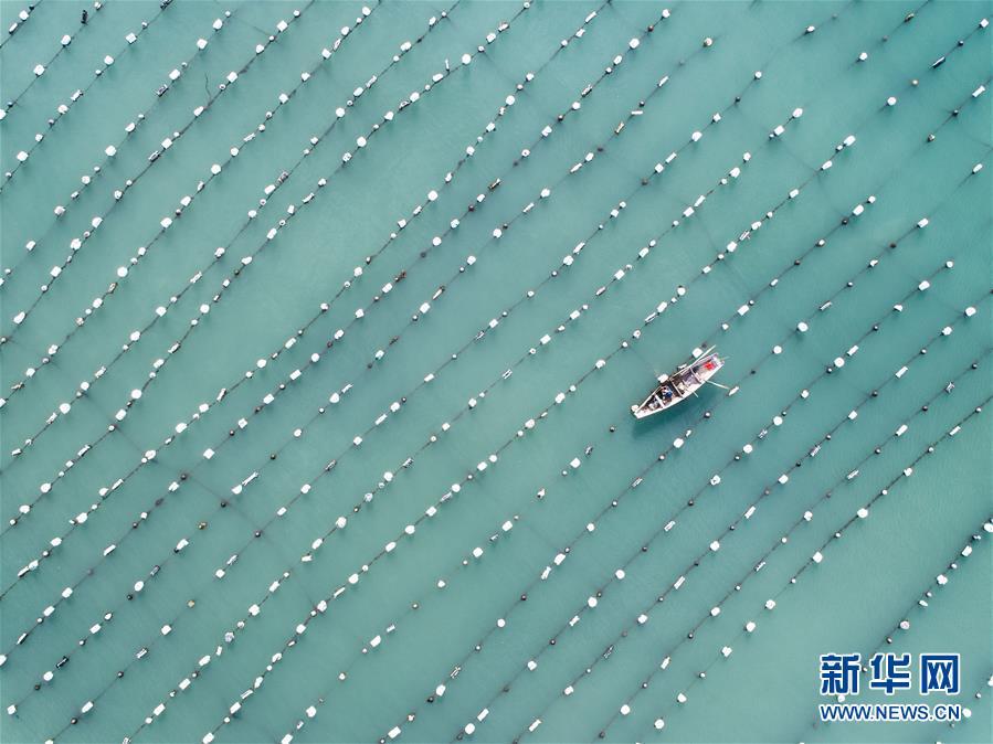 8月18日,南麂島海域的“海上牧場”養(yǎng)殖區(qū)內(nèi),漁民準(zhǔn)備進(jìn)行養(yǎng)殖作業(yè)(無人機(jī)拍攝)。進(jìn)入8月,浙江省溫州市平陽縣南麂鎮(zhèn)海域上大片的大黃魚、貽貝等特色海產(chǎn)品養(yǎng)殖區(qū)域迎來豐收季節(jié),養(yǎng)殖戶們駕駛漁船在養(yǎng)殖區(qū)海域進(jìn)行打撈收獲,在碧海藍(lán)天下構(gòu)成了一幅“海上牧場”的美麗豐收景象。近年來,南麂鎮(zhèn)政府引導(dǎo)漁民養(yǎng)殖戶充分發(fā)揮“靠海吃?!钡馁Y源優(yōu)勢,大力發(fā)展海洋養(yǎng)殖經(jīng)濟(jì)和海島旅游經(jīng)濟(jì),實(shí)現(xiàn)了南麂由“生態(tài)美”向“產(chǎn)業(yè)美”,“產(chǎn)業(yè)美”向“經(jīng)濟(jì)美”的轉(zhuǎn)變。同時該鎮(zhèn)堅持以大黃魚、貽貝等為特色產(chǎn)業(yè)支撐,精準(zhǔn)發(fā)展高效海洋養(yǎng)殖業(yè),重點(diǎn)培養(yǎng)一批新型職業(yè)漁民,依靠專業(yè)技術(shù)支持,實(shí)現(xiàn)深海仿生養(yǎng)殖,讓好生態(tài)造就好品質(zhì),重點(diǎn)打造南麂養(yǎng)殖品牌,組建營銷網(wǎng)絡(luò),拓展特色海產(chǎn)品市場。新華社記者 徐昱攝