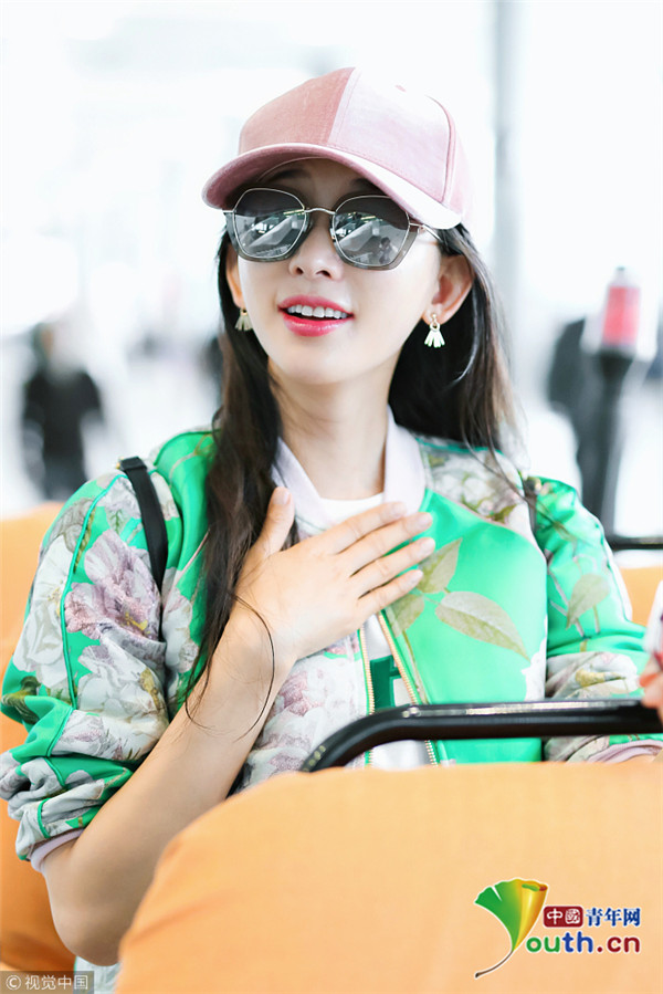 2018年10月16日,上海,林志玲亮相機(jī)場(chǎng),她身穿綠色印花外套搭配粉色鴨舌帽十分清新靚麗,乖乖坐小車(chē)抿嘴甜笑比V嘟嘴頻賣(mài)萌。