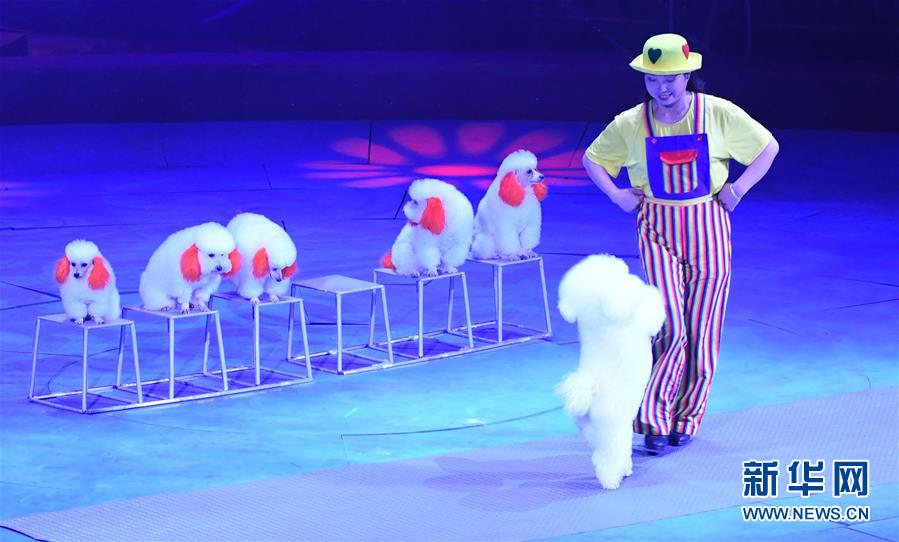 10月16日,馬戲團(tuán)演員在濮陽國際雜技藝術(shù)節(jié)上表演馬戲《小狗當(dāng)家》。
