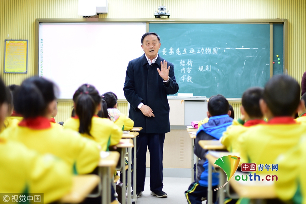 2018年4月4日,青島。現(xiàn)今很多人都在談?wù)撗舆t退休,而對(duì)于74歲的周加惠來說,他的第二個(gè)事業(yè)是在退休之后才開始的。周加惠今年74歲,是山東青島的一名退休教師,在過去13年里,他先后1005次走進(jìn)青島市區(qū)周邊的郊區(qū)小學(xué)或農(nóng)村小學(xué),1005次下鄉(xiāng)送課?!爸Ы虓u”是2005年成立的一個(gè)公益組織,而周加惠則是“支教島”活動(dòng)的創(chuàng)始人之一,其主要職能是幫助農(nóng)村教師進(jìn)修學(xué)習(xí),同時(shí)聯(lián)系青島市區(qū)內(nèi)的名師下鄉(xiāng)送課。圖片作者:視覺中國(guó)
