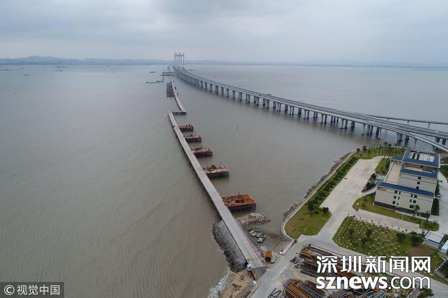 航拍福廈高鐵泉州灣跨海大橋施工正酣
