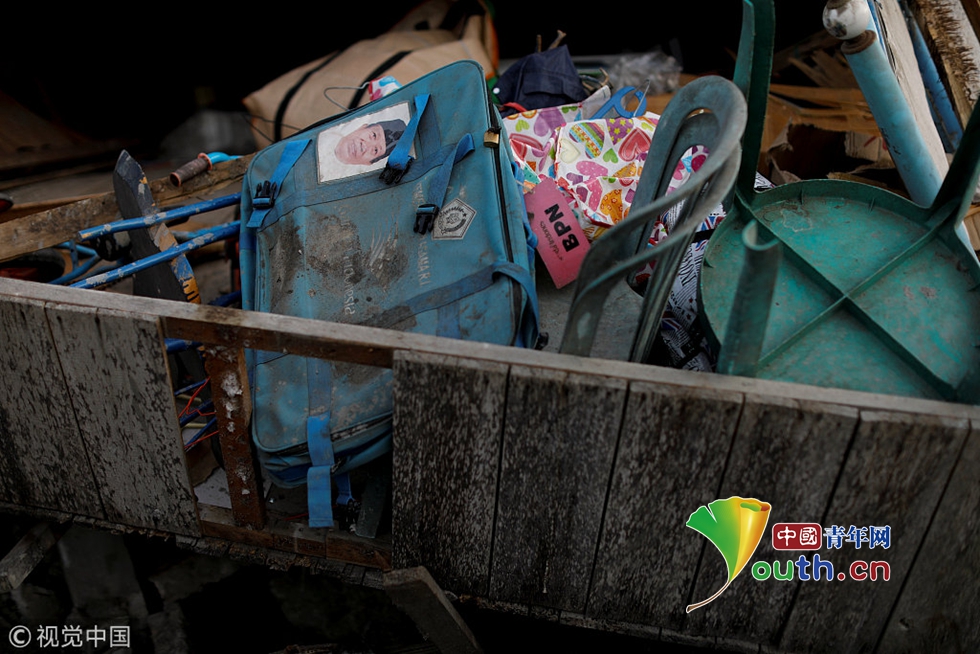 當(dāng)?shù)貢r(shí)間2018年10月11日,印尼帕盧,43歲的農(nóng)民Ahmad在廢墟旁邊,這里曾經(jīng)是他的家。他希望能找到妻子和兩個(gè)女兒的遺體。他的三女兒被發(fā)現(xiàn)時(shí)受了重傷,現(xiàn)在正在醫(yī)院接受治療。