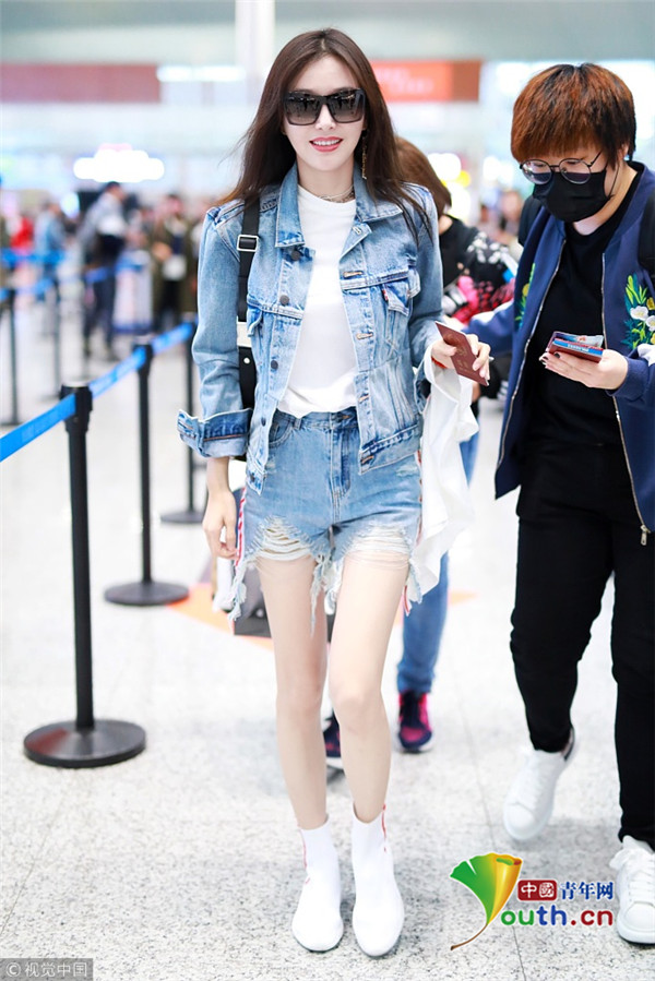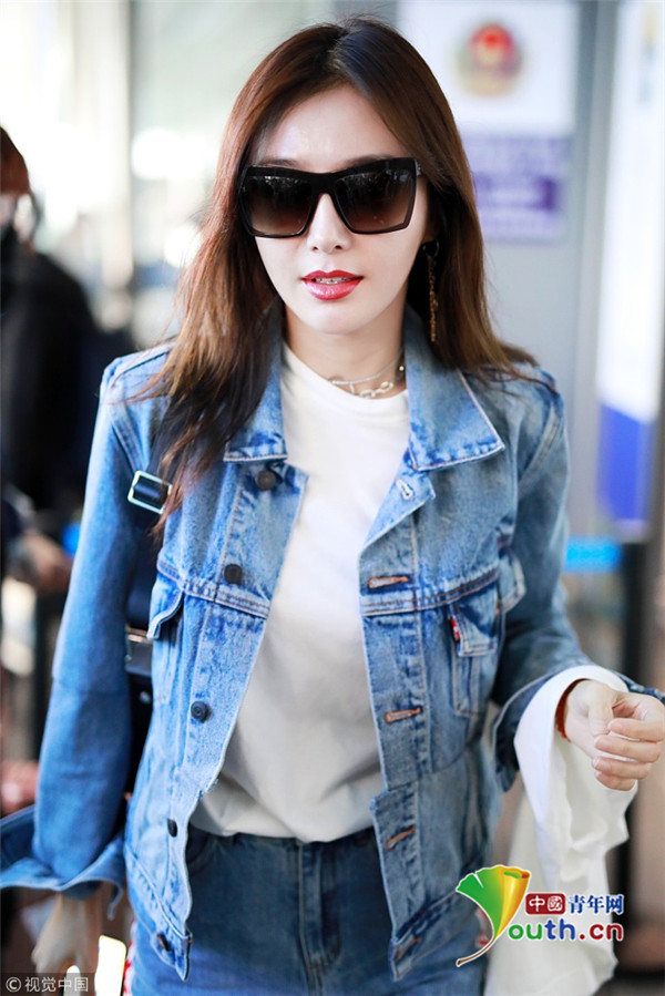 2018年10月17日,上海,秦嵐現(xiàn)身機場。她一身牛仔LOOK露出白皙長腿,雪膚紅唇美得不可方物,長發(fā)飄飄玉手撩發(fā)女神范十足。